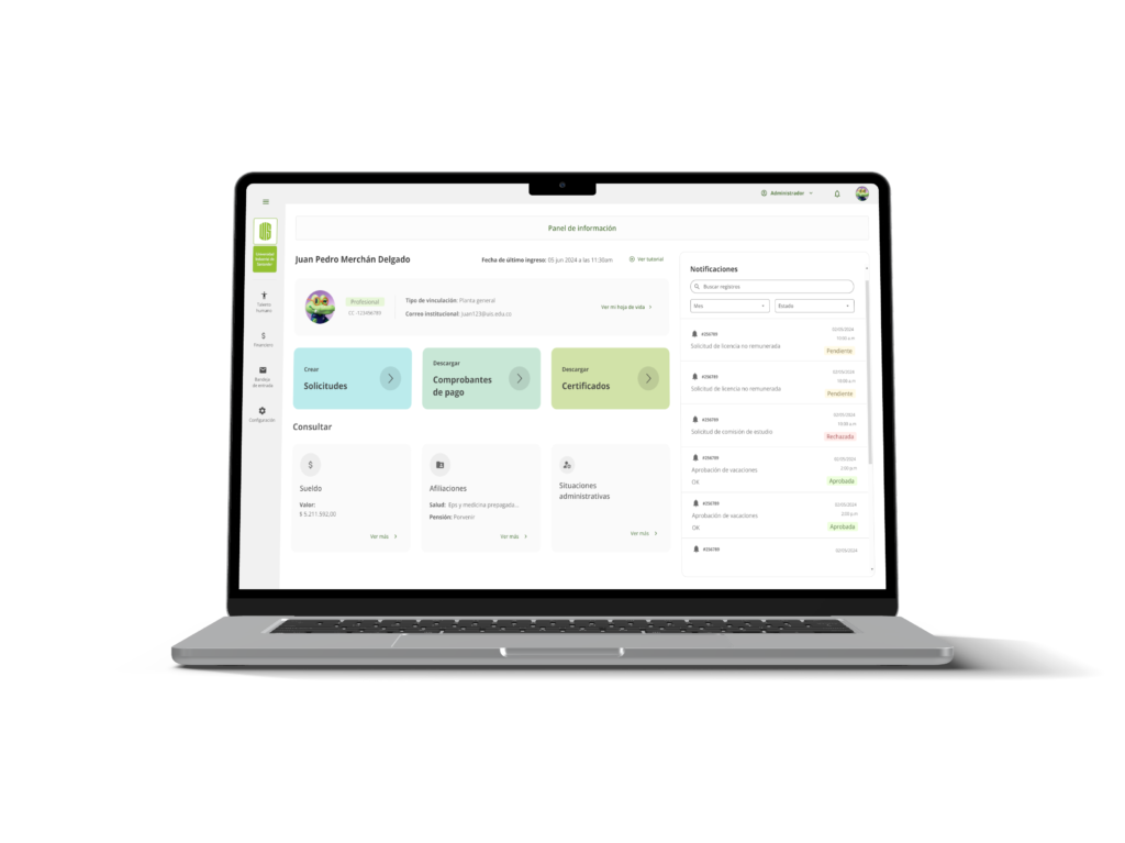 Este módulo involucra a distintos perfiles como empleados, jefes inmediatos, rector y personal de talento humano. Por eso, el primer paso es identificar los puntos de interacción de cada actor y entender el flujo de una solicitud desde su creación hasta su resolución final.